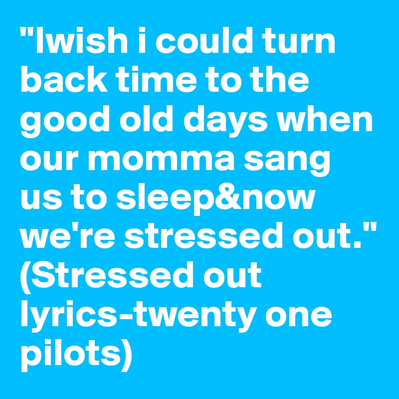 Iwish I Could Turn Back Time To The Good Old Days When Our Momma Sang Us To Sleep Now We Re Stressed Out Stressed Out Lyrics Twenty One Pilots Post By Muriel99 On Boldomatic - 1, 2, 3, 4, 5 years go by i don't really know why i don't really know why 7, 8, 9, 11 years go by i don't really.