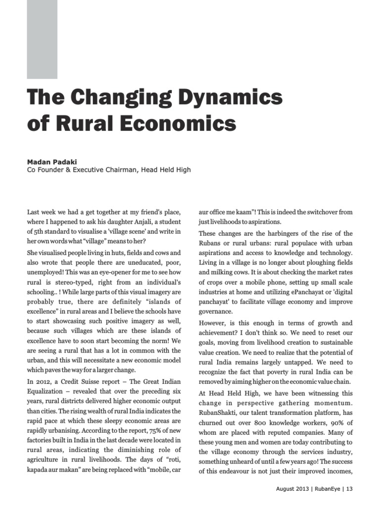 Madan Padaki Head Held High / Madan padaki, whose company headheldhigh services counts rural india as its main market, is your typical startup entrepreneur.