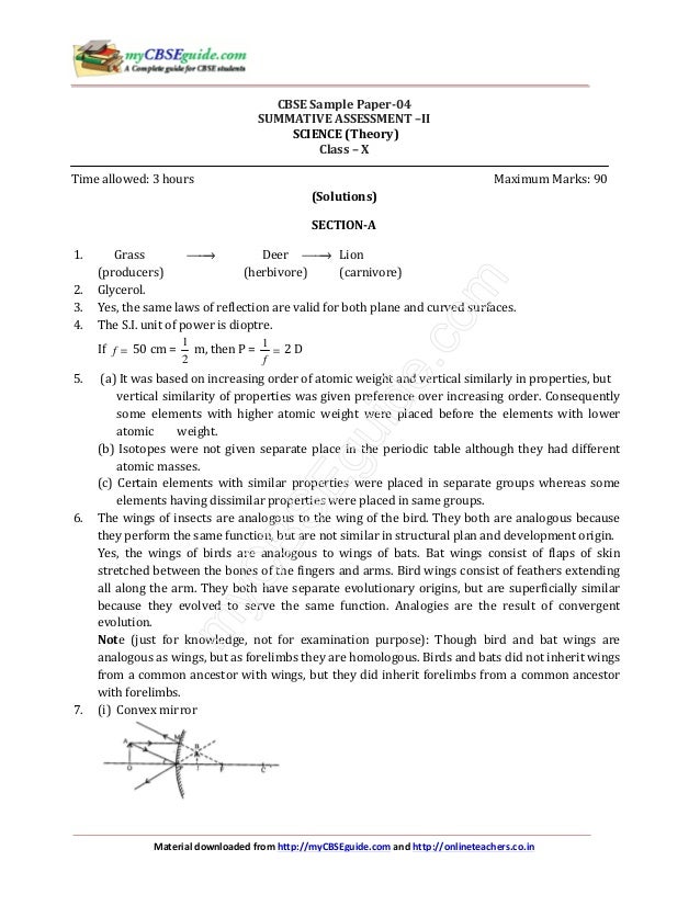 Important Cbse Paper For Science - Cbse sample papers for class 10.