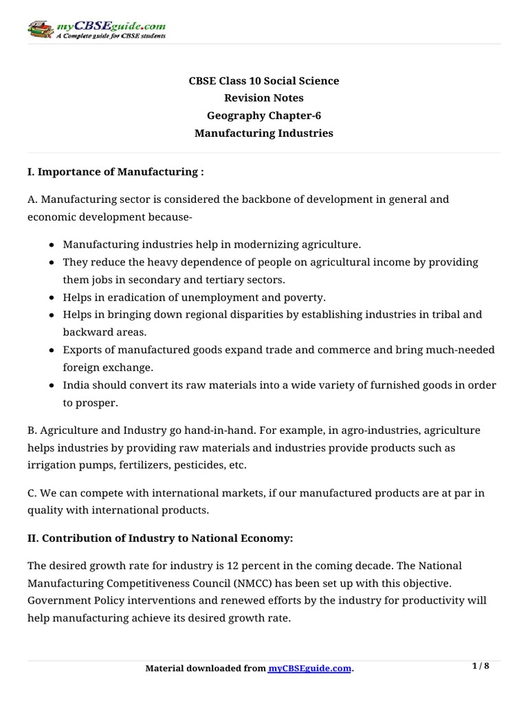 10 Social Science Geography Revision Notes Ch6 Jute Sugarcane - Short notes, brief explanation, chapter summary, quick revision notes, mind maps and formulas made for all important topics in social science in class 8 available for free download in pdf, click on the below links to access topic wise.
