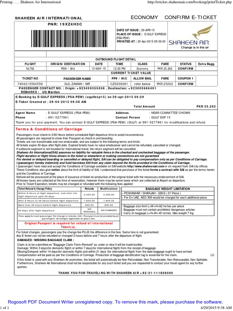 Shaheen Air E Ticket / To spread our wings across the region with our. Shaheen Air E Ticket - Shaheen air allows 32 kg baggage and it should be in one piece;