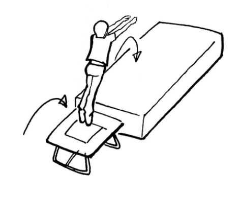 Streksprong Minitrampoline : Minitrampoline kannst du in sporthaeusern und grossen kaufhausketten kaufen. Streksprong Minitrampoline : Hele draai springen vanuit minitrampoline achterwaarts.