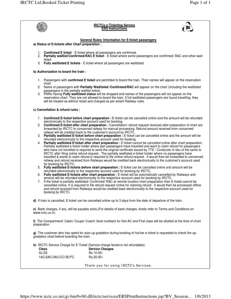 Procedure For Cancellation Of E Tickets Home Contact Us Ticket Admission Services Economics - Updated train chart preparation time in 2020 indian railway.